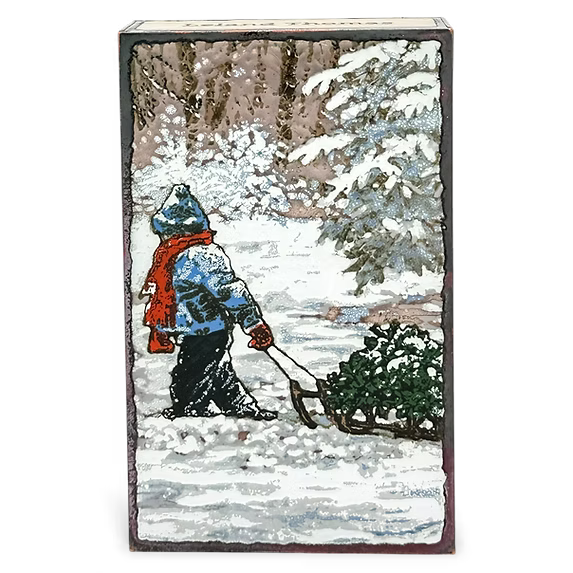 Each Spiritile is made by hand using ground glass that is painted, then kiln-fired to copper and enveloped around a solid frame. Every tile has its own story wrapped around the sides to match the iconic and inspiring moments drawn from life. Made in the USA.